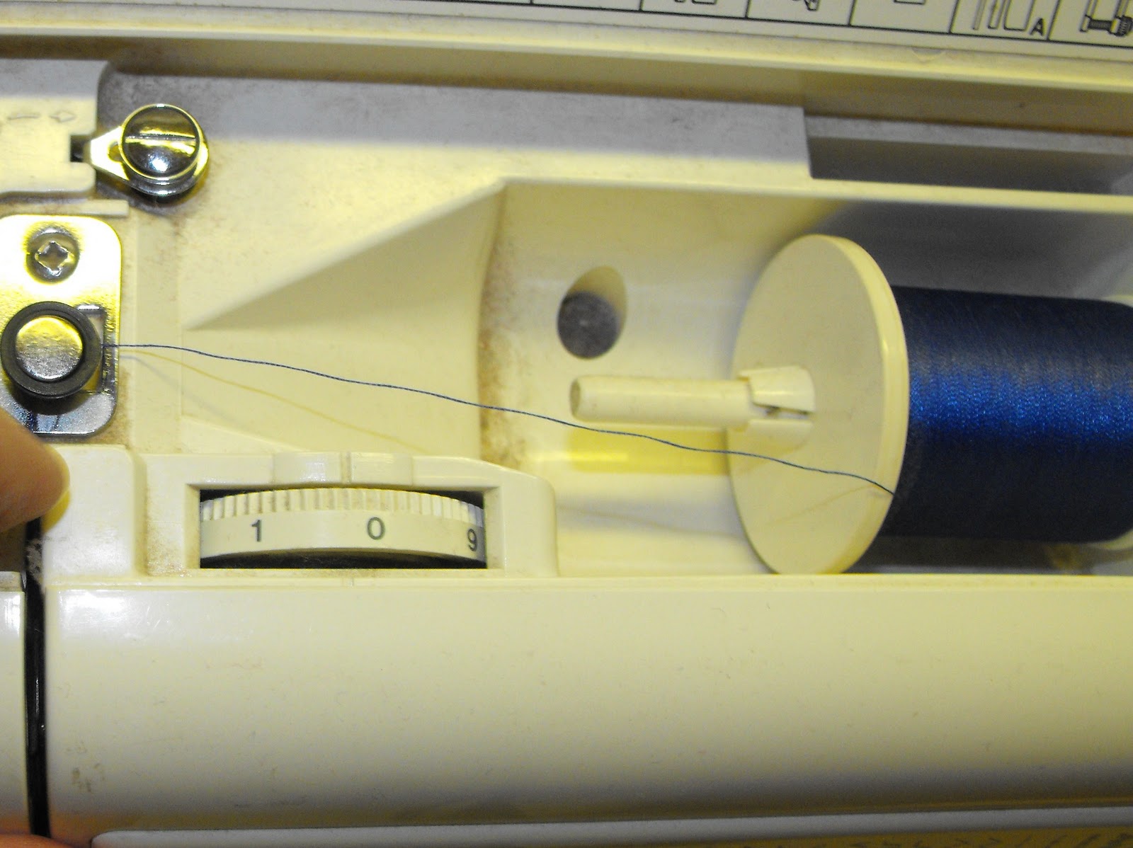 I have a close up of my sewing machine. I have removed my sewing foot so that you can see the "feed-dogs" These are the long, textured rows that help feed the material through the machine.