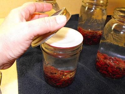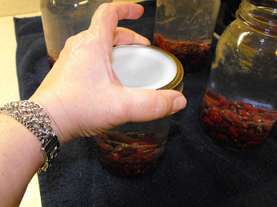 Here I am testing the wide mouth lids. The first time I tried them, I put the seal and the lids on separately....and they did not seal. The second time, when I put the seal on the lid before I applied it to the jar, it did seal. For me, after checking to see if you have a seal with the wide-mouth, then put the rings back on tightly and check the next day to be sure. That seemed to work best for me.