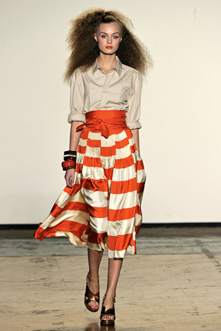 The Marc by Marc Jacobs Spring 2011 collection was a total favorite of ours. We loved the vibrant, earthy colors and especially adored the gorgeous, full, mid-calf length skirts. These skirts are so pretty and so wearable. Modest girls everywhere can be on the cutting edge this Spring with a mid-calf length skirt. This look also seems to be a fashion trend with some staying power. We've noticed many stylish Fall 2011 Fashion week attendees wearing this newest, and hottest, skirt length.