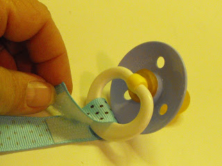 Well, I have been peeking at the prices of baby gear lately....and almost required CPR. So, my daughter and I are putting our heads together and trying some inventive things to help her prepare. This idea is just one of our endeavors. We were in a boutique yesterday that had cute pacifier clips that cost a small fortune. However, they were really cute. But, I did not like the clasp to hold the ribbon on to the baby's clothing. It reminded me of a clasp on a necklace....but super sized.