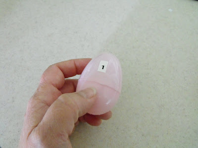 Then I affixed one number to each egg. You could write the number on the egg or just try to remember which item is in what color of egg.