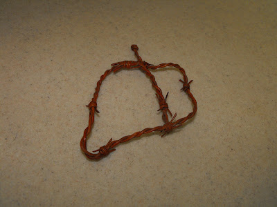 For the crown of thorns, I was going to use pieces from my thorny bushes outside, but I worried about little fingers getting hurt as they opened the egg and then placing the item into the box. So, I found this leather 'barbed wire' item at the craft store. It still looks thorny, but is soft to the touch.