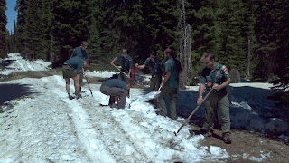 This year is different. The winter season brought far more moisture than is common. The spring was unusually cool and wet. It is not uncommon for the staff to deal with a few downed trees, mud bogs, and occasional snow banks as they make the first long drive over the dirt roads that lead to camp. But this year there has been so much snow on the road that there was no possibility of vehicles reaching camp before now. It turned out that there was no possibility of vehicles reaching camp yesterday either.