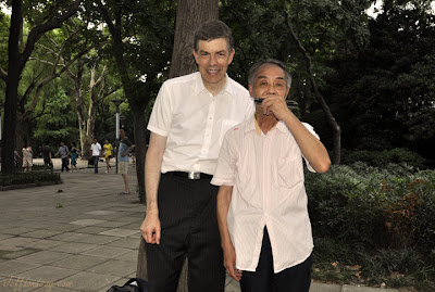 One of the people kindly took a photograph of me and the master of the harmonica, Mr. Li, a wizard of Zhongshan Park who helped me have one of my most magical Sunday afternoons ever. When it was time to part, I was shaking hands and saying good-bye to many people and felt like I have new friends I can look forward to meeting again. I think I'll be back to Zhongshan Park, a magical place. I definitely need to get back, for I never even got started on all the writing and study I need to do there (or somewhere).