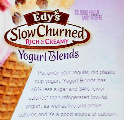 So here's the "FAIL" part of the story. Edy's Ice Cream had a lovely full-page ad in Better Homes and Gardens in 2009 (I believe it was June 2009 - that's when I took the photos). The ad touted the advantages of Edy's frozen yogurt over regular refrigerated yogurt: