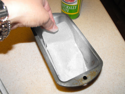 As the paper curls from being on a roll, I sprayed the bottom of the pan with a vegetable oil spray. It acted as a type of adhesive for the liner. I then sprayed the sides of the pan as well.