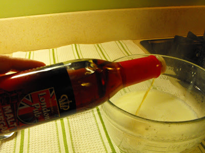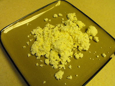 I decided to use a Malt Vinegar....which is readily found at grocery stores. Now, remember the "not an exact science" part? Well...do this slowly. Pour in a little bit of vinegar and stir. Do this in small increments until you see curds form and separate from the whey.