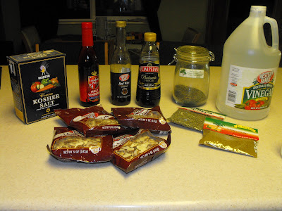 I decided to make Cheese logs for this gathering of Young Single Adults. In the class, Raylene had many different types of flavored vinegars and Spices she purchased from a Latino Food Store. She said the spices that you purchase in these establishments are a lot fresher and less expensive. I'm all for that. So, I purchased a couple from her list, along with Malt Vinegar. I already had Balsamic and White Vinegar. You will also need Kosher Salt flakes. (These are so much less expensive than the Cheese Salts that you see advertised. It is not iodized, which is needed for cheese making according to Raylene).