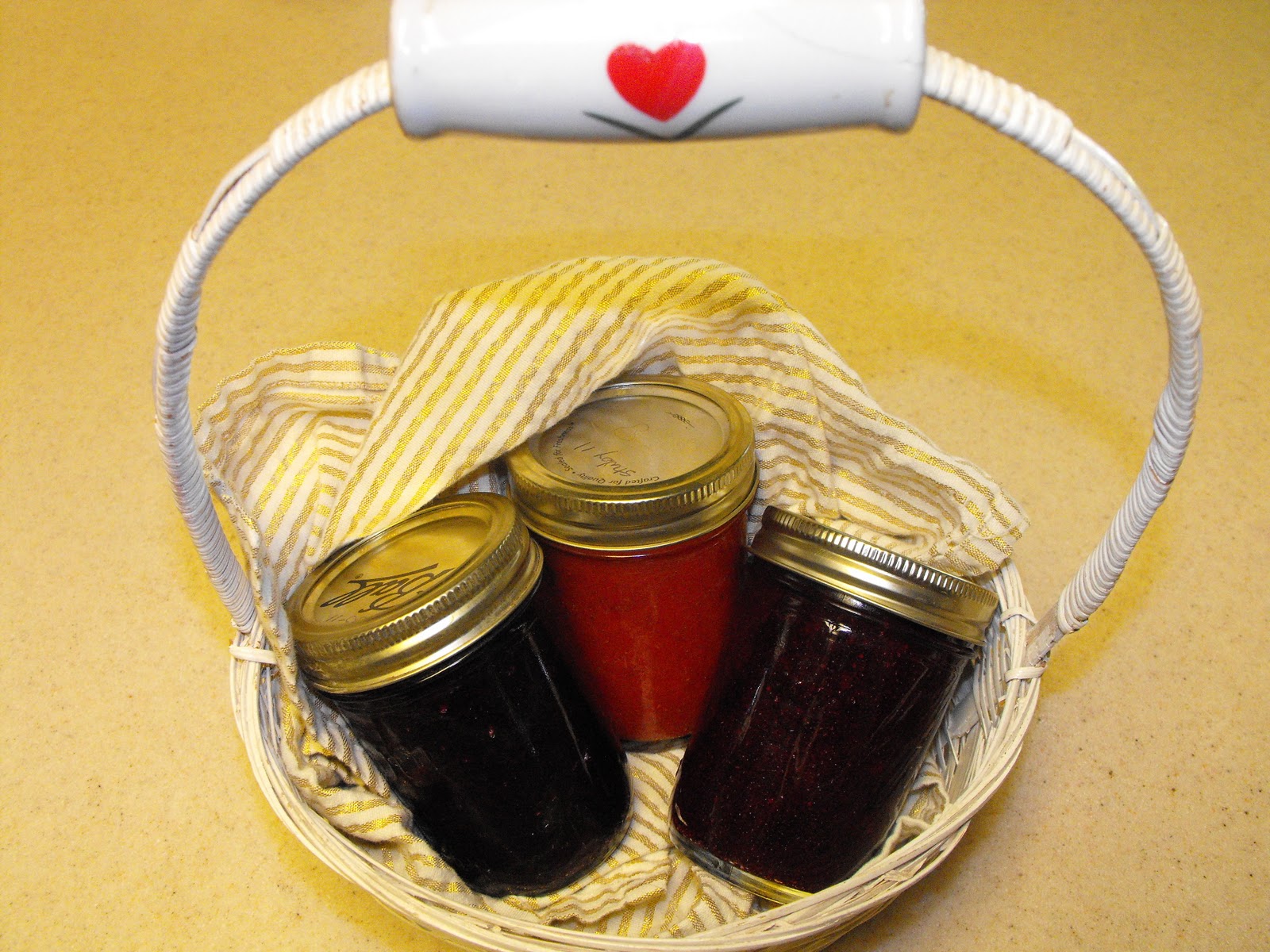 I made 4 different types of Jam in one evening. I realize I am only showing 3, but 4 gives me a variety to give. I plan to make bread dough in my Bread maker (again, time is the issue) and have it waiting for me when I come home from work, Then I can bake it in mini-loaf pans, put the bread in a cellophane bag with a bow and also put something cute on top of the jar to go with it. Every gadget has parts that can be put into the dishwasher to clean while I am doing something else. I am hoping that these young people can feel a bit of 'home' when we go visiting. As much as they would probably hate to admit it, they do miss their parents and the sense of home.