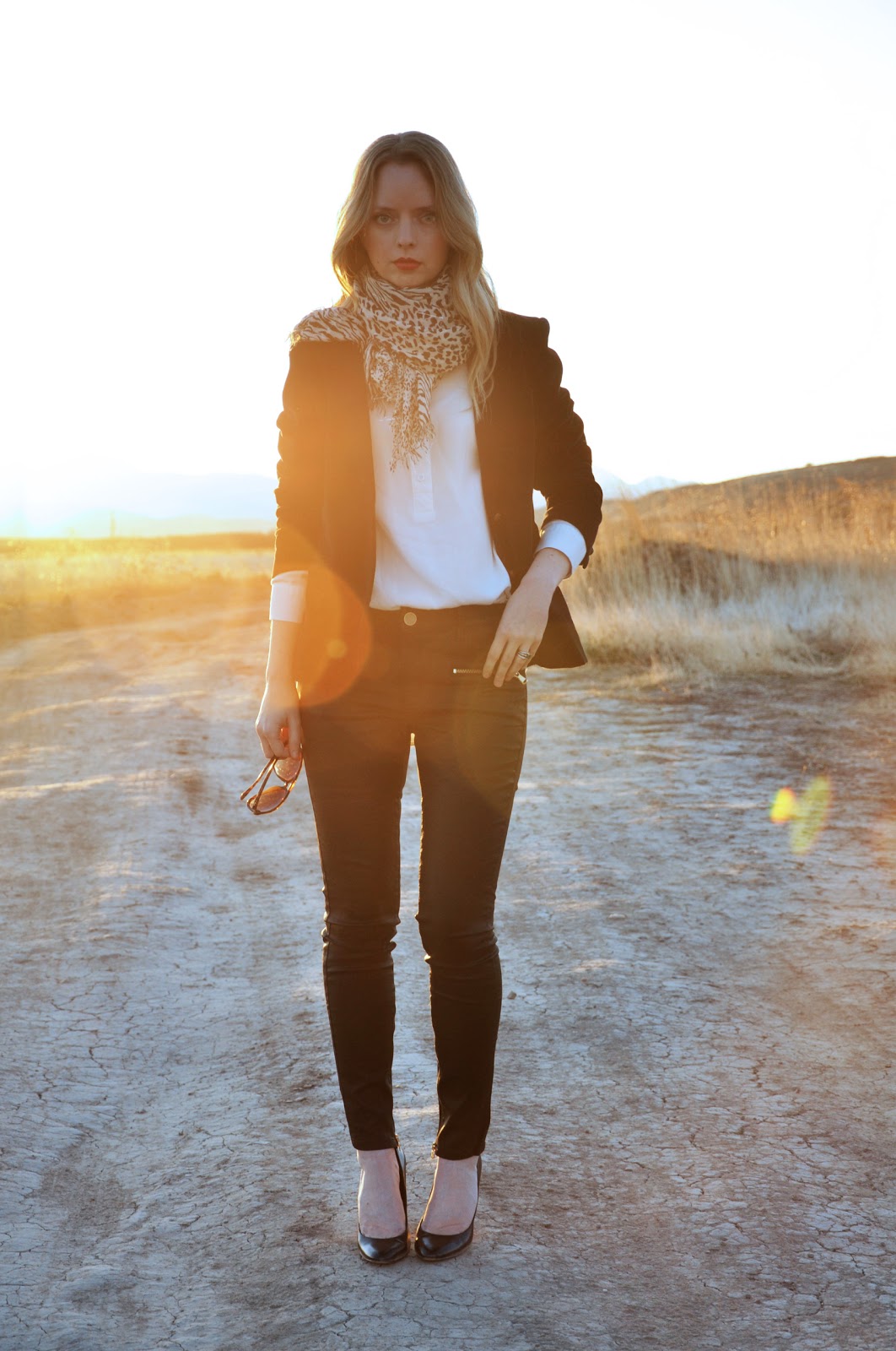 Wondering how to look chic without feeling incredibly dressy? If you use the right pieces sometimes 'simple' can still have high impact. Here I'm wearing my favorite waxed skinny trousers from Zara, thrifted corduroy blazer, Forever 21 blouse and scarf and Aldo heels.