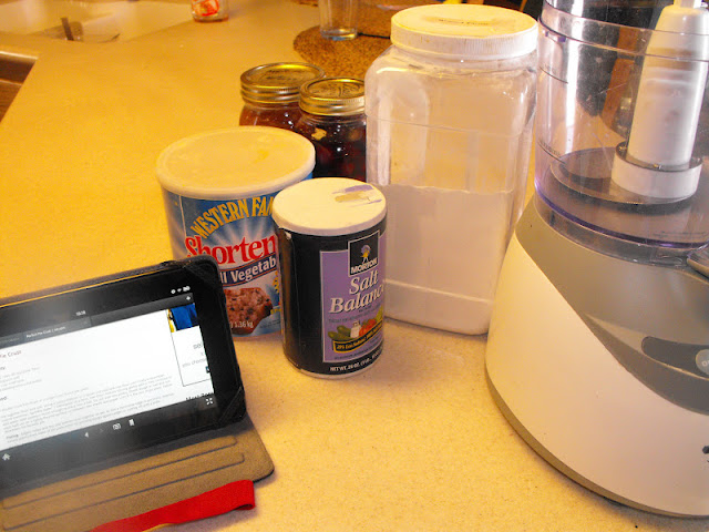 I then thought about all the food storage staples I have in my home...and now that one or more children come and go, we don't necessarily need it all. So, I decided to make something from my Food Storage. I decided upon pies. I put the first 3 ingredients in my food processor.