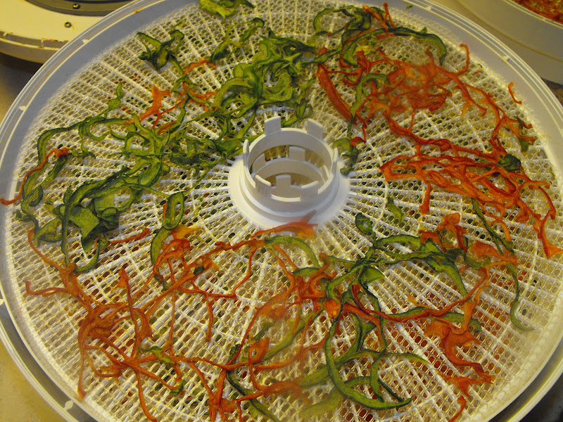 An Voila! Fresh Pepper flakes to use as I wish. Aren't they pretty? Eight bell peppers made 3 oz of Dehydrated Peppers.