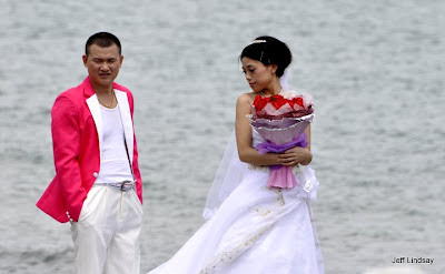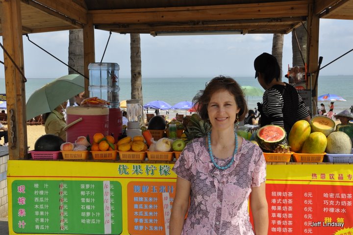 One of the things I like about China is the tendency to be modest, especially at beeches. Here's a scene from a warm, sunny day on the beautiful island of Hainan at a beach near Haikou on the north of the island. Beach attire was remarkably modest. OK, during the summer skirts tend to be too short for my tastes, but I don't think I've ever seen a Chinese woman with a bare midriff (though when it's hot, some of the men tend to role their shirts up, so we do have a midriff problem here). Overall, I'm pretty proud of China for relatively high standards of modesty.