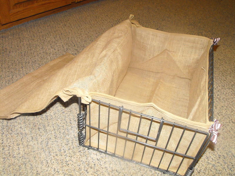 So, I sewed some left over Gross-grain ribbon to the front two corners and tied them to the front part of the basket.