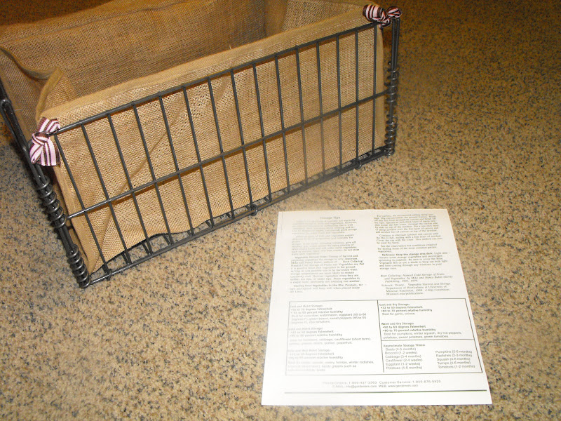 What do you think this might be? I was intrigued when I first came across this idea. It is a Root Vegetable Storage Bin (from www.Gardeners.com). Now, you may wonder why I find this idea a good one. I live in an area that is full of big rocks. I mean, when they dug out our basement when we built our home, the pile of rocks looked like somewhere that Fred and Wilma would be right at home. As such, I knew I couldn't have a traditional root cellar. So, when I saw this item, I was excited. I do have a dark, cool room in the basement that would be perfect for this 'mini-root-vegetable-cellar'. I ordered this item on-line.....and it arrived today!
