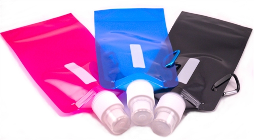 This bottle holds 16 oz. and comes in different colors. It also has a strip to write a person's name or to label the contents. You can order them from Bling Berry directly.