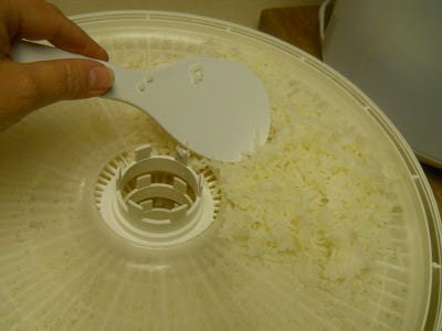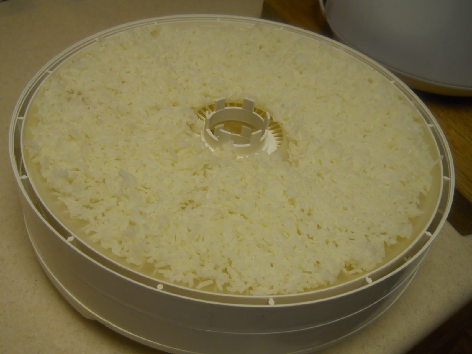 I pulled out my dehydrator. I put the inserts that I use to make fruit leather on the tray to hold the rice.