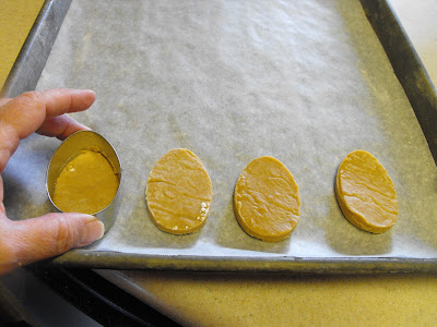 Use Powdered Sugar to dust the rolling pin if needed. I used an Egg Cookie Cutter to cut the shapes out.s