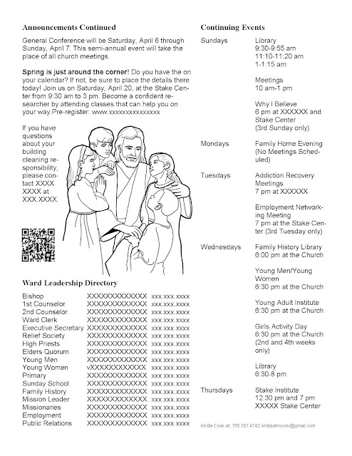 Right after I started doing the bulletin (program) in my current Ward, I closely observed who was reading it during Sacrament Meeting and how it was being used. Instead of handing it out entirely to adults, I hand it out to everybody. I observed numerous teens reading it. Also, I noticed kids coloring the picture of the chapel I include in the upper right hand corner.