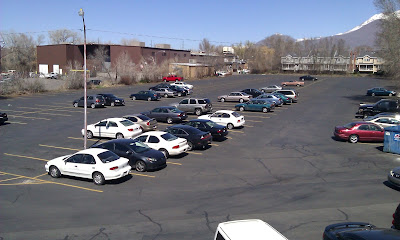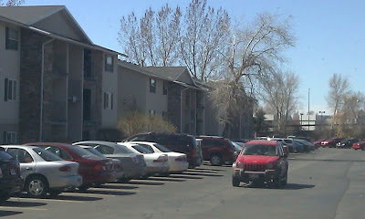Standing from the Balcony of one the above Apartment buildings, I took these 3 shots from right to left....of an enormous parking lot. Think about it, these missionaries will not need any parking space. Temporary buildings could be established here for teaching and dining.