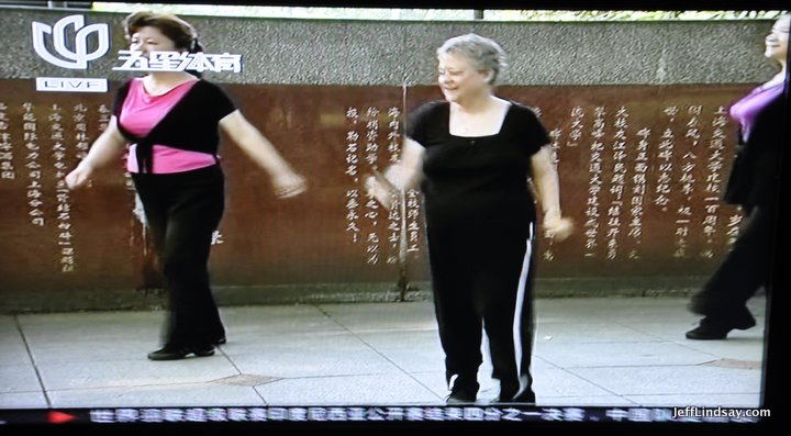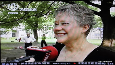 More recently, Debra Roundy, here teaching English with her husband at Jiao Tong University through BYU's Kennedy Center program, was on TV for a long segment, nearly 5 minutes, that highlighted her involvement with local Chinese people as she shares her passion for dance. She works with many local Chinese as they practice and perform group dances. Dance is such a wonderful part of Chinese communities, and a foreigner with the interest, talent, and energy to be involved and influence the community through dance is an unusual and definitely newsworthy story.