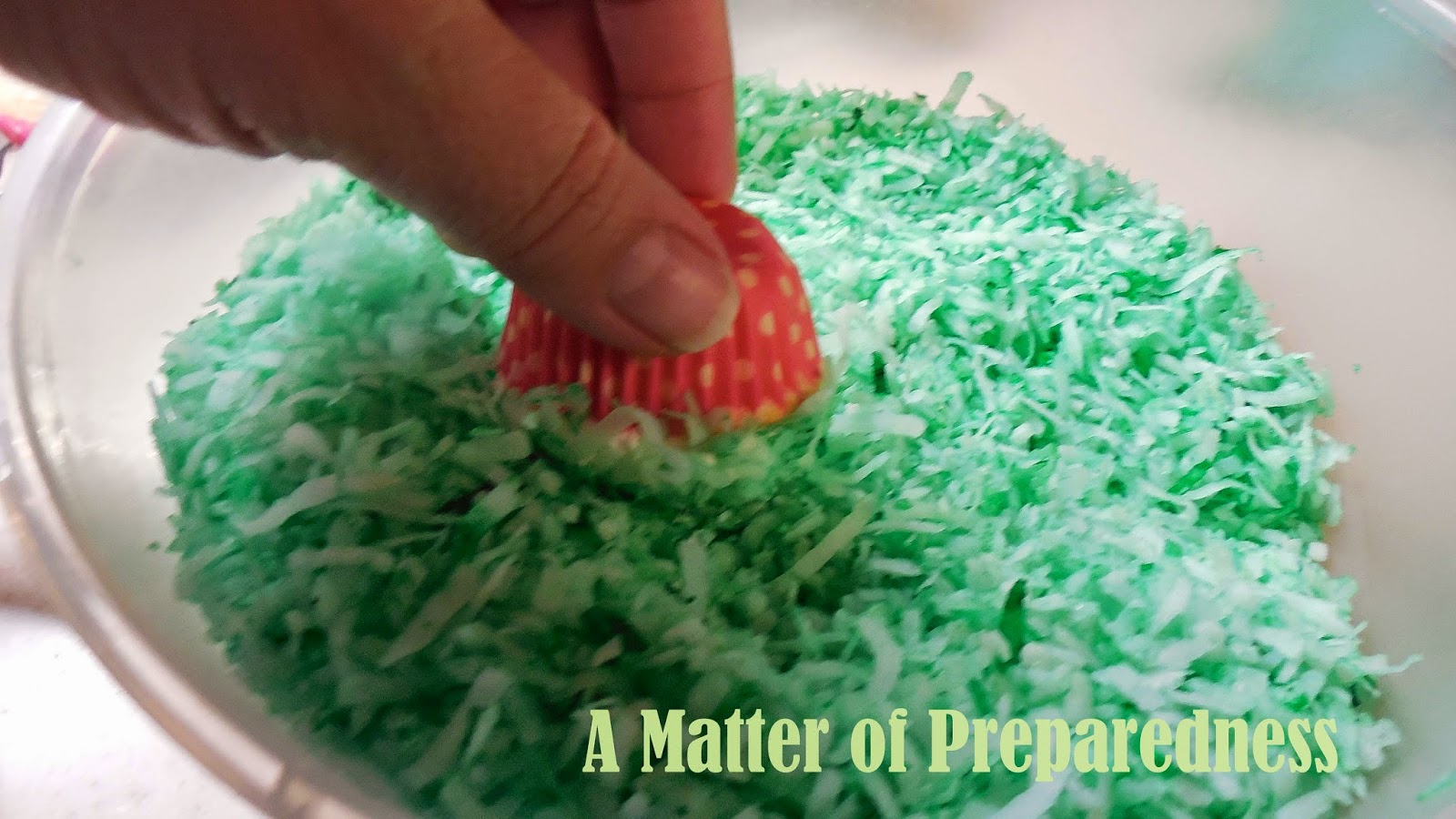 Here is why, I turned over the cupcake and dipped the frosting side into the colored coconut.