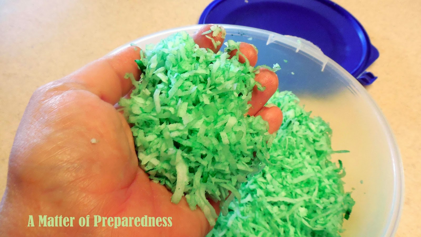 I wanted to turn it into 'grass'. I took my food coloring and added a few drops of green.