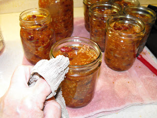 First, let's talk about time. I picked a day when I was going to be around my home most of the time. I did not babysit this process. I cut, cooked, bottled a few minutes at a time. Most of the time was needed to soak (and you now know I didn't even stick around for that to occur), simmer, and process. This is time I didn't have to spend in the kitchen, even though I would wander through to make sure everything was working as it should. I cleaned, organized, and did work on my computer. I even had to take my son to the Insta-care when he returned home from a High Adventure camp-out because of a little mishap he had while he was away. I let the canner cool during that period. (If you know my son, please don't mention this to him, he hates it when 'I let everyone know things'....he's so funny). So, I hope you see that I didn't have to devote a tremendous amount of direct time to the process, however the cumulative process did involve hours.