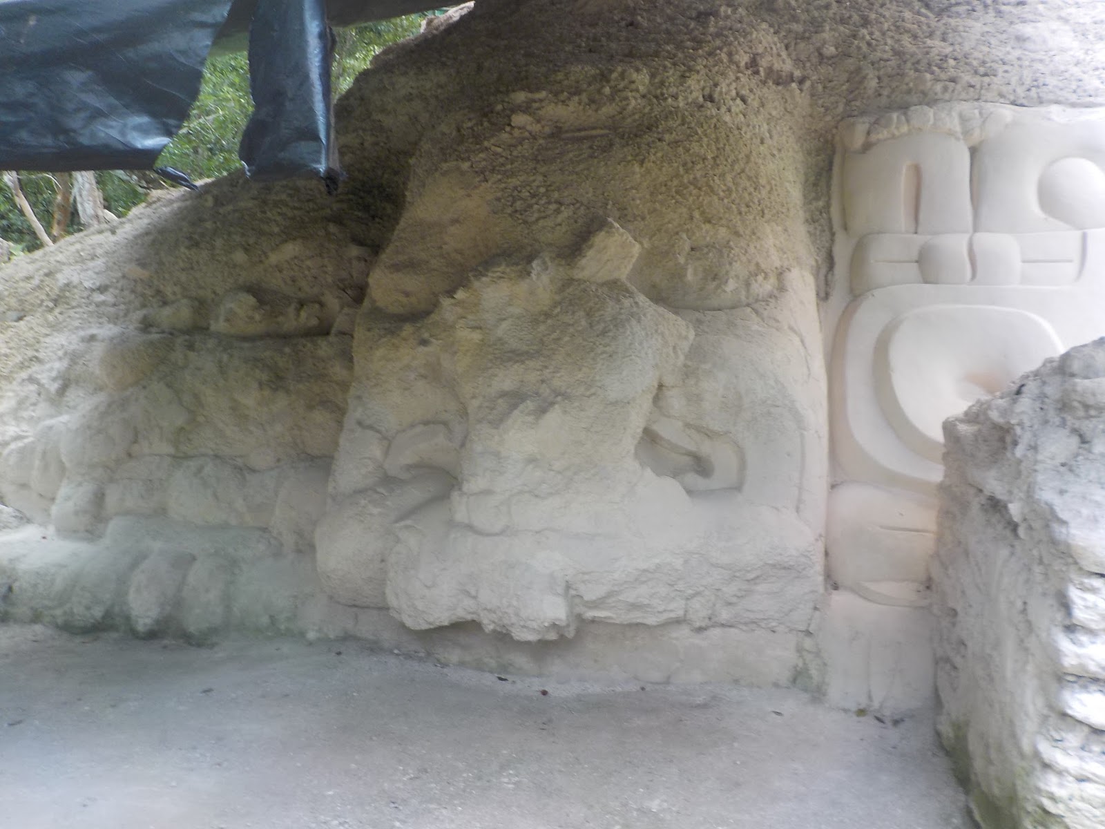 | Part of the incredibly well preserved stucco freize at the Temple of Jaguar Paw |