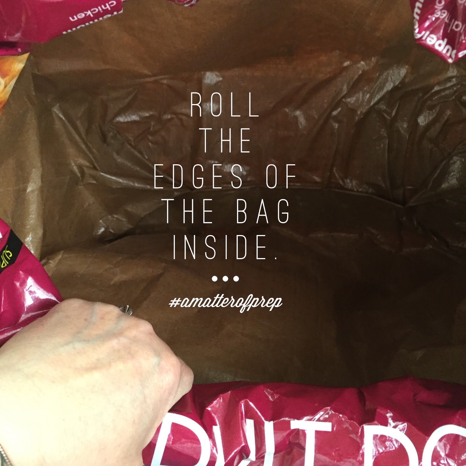 The purpose of growing potatoes in a bag is to grow vertically. I rolled the edges to the inside until only about 1/3 of the bag was height was visible.