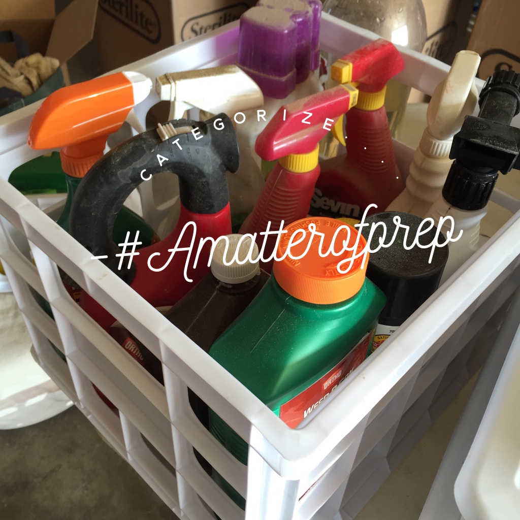 I looked at what I saw as chaos. I got online and ordered milk crates and clear shoe boxes. (It is important to Rooster Senior that he can see everything. This is why I chose these containers. You can see what is inside for the most part). I set up a 'sorting station'. I used an 8 foot table and utilized the space on top of the table as well as under it. As I took out a bag/box/can, I sorted the items into an appropriate container. I am a Speech-Language Pathologist by training. One of the things that we teach folks with Executive Functioning issues to learn categorization and to use it to problem solve...along with other things. Organizing requires categorization....so I used Categorization to sort the many items I was pulling from these cabinets.