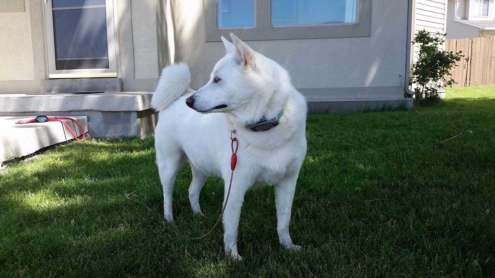 As soon as the effects of the general anesthetic wore off, it became quite clear that we would need something to prevent the dog from accessing his paw with his mouth. A standard plastic e-collar (Elizabethan collar, aka "cone of shame") seemed to be the most economical approach. But the size that fit him was simply not adequate. Our dog could access his paw with relative ease even with the collar properly in place.