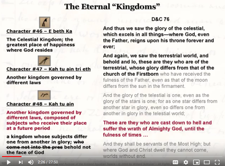 Here is one slide from Part 1 of Schryver, showing the intricate relationship between Joseph's comments for Facsimile 2 and the comments in the Grammar for one particular character.