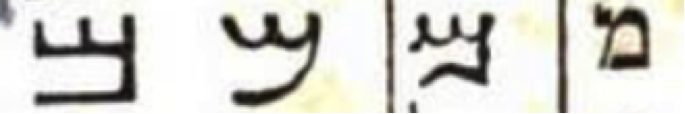 The character on the left from the papyrus fragment has ink that appears to have already come to an end near the end of the lacuna suggesting that upper part of the character may not be a good match. [Update, May 20, 2019: An earlier photograph in Matthew Rhodes' 2002 book, The Hor Book of Breathings, shows the ink reaching to the edge of the lacuna more fully. Perhaps a piece of the manuscript flaked off between that photo around 2000 and the photography session 15 or so years later for the Joseph Smith Papers Project. If that is correct, then the drawn character may adequately reflect what was on the scroll. Still a cool coincidence that the Moses Stuart Hebrew coin letter would be identical. Maybe that means something.] The distribution of ink in the lower half also does not closely fit the character drawn on the Book of Abraham manuscript. While speculative, consider the possibility that this character might have come from one of the Hebrew coin or Aramaic versions of a Hebrew letter from Stuart's book, in this case the Hebrew letter mem. The two characters on the left are Hebrew coin letters, the Aramaic version is in the central column, and the Hebrew is on the right: