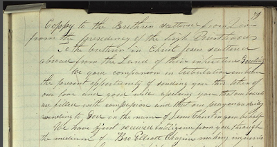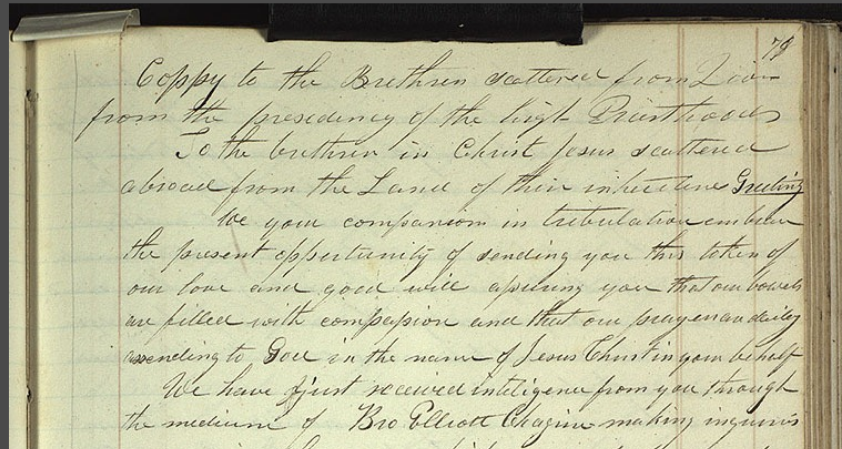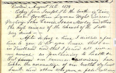 Another example of very dark ink is seen in his "Letter to Lyman Wight and Others, 16 August 1834":