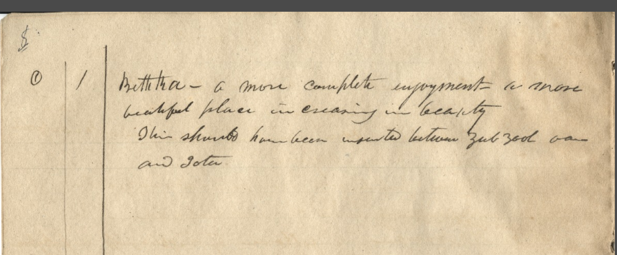 Some valuable information may be related to the order of the "Egyptian" words and their definitions in the GAEL. In my last post, a reader who goes by "Joe Peaceman" made a valuable point as he tried to explore what the text of the GAEL tells us about its construction. He pointed to an interesting correction that W.W. Phelps made throughout the various "degrees" of his document. The word "Beth-ka" had apparently been skipped early in his work, and so Phelps added a note on blank page calling for its insertion between two other characters. The word "Beth-ka" or "Bethka" or "Beth ka" in GAEL is variously said to mean "the greatest place of happiness" (GAEL, p. 2), "a more complete enjoyment— a more beautiful place" (p. 8), "a place of exceeding great beauty" (p. 12), "a larger garden— more spacious plain" (p. 17), "A large garden, a large val[l]ey or a large plain" (p. 19), and "Another & larger place of residence made so by appointment. by extension of power; more pleasing, more beautiful: a place of more complete happiness, peace and rest for man" (p. 34).