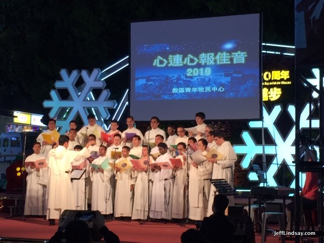 For Christmas Eve, our plan was to take a taxi to the main island of Macao and attend a mass at a Catholic cathedral or an event in the plaza nearby in order to experience beautiful religious Christmas music. It worked out so well, through the miracle of selfless service from two Chinese strangers, and the love of so many good Catholic people sharing their musical gifts with us and a large crowd tonight. I especially appreciated the woman who hosted the program and gave little spiritual thoughts about Christ between many of the musical performances. Some beautiful preaching from a faithful and enthusiastic Christian woman.