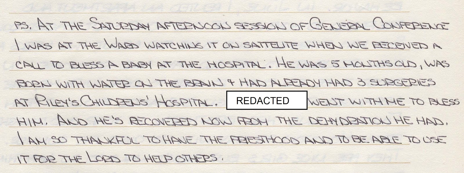The version of the story of the infant he blessed that lived comes from his journal. It is remarkably modest: