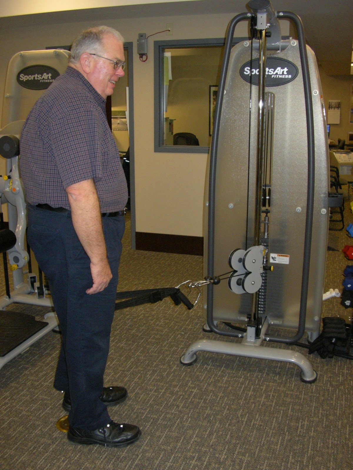 | Greg doing physical therapy after his knee injury. |