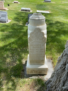 The night before, instead of trying to get in a few more hours of work, I wondered if there were other relatives of mine at that cemetery. By using both my FamilySearch app and the BillionGraves app, I was able to locate several other relatives in the South Park Cemetery, and also find that the Elliott Cemetery in Wilson had several more relatives of mine. Further, nearby Victor Idaho had the grave of one of my most notable ancestors, Talitha Cumi Garlick Cheney (later Avery). It was on the way to Salt Lake. WE were able to see all three cemeteries.