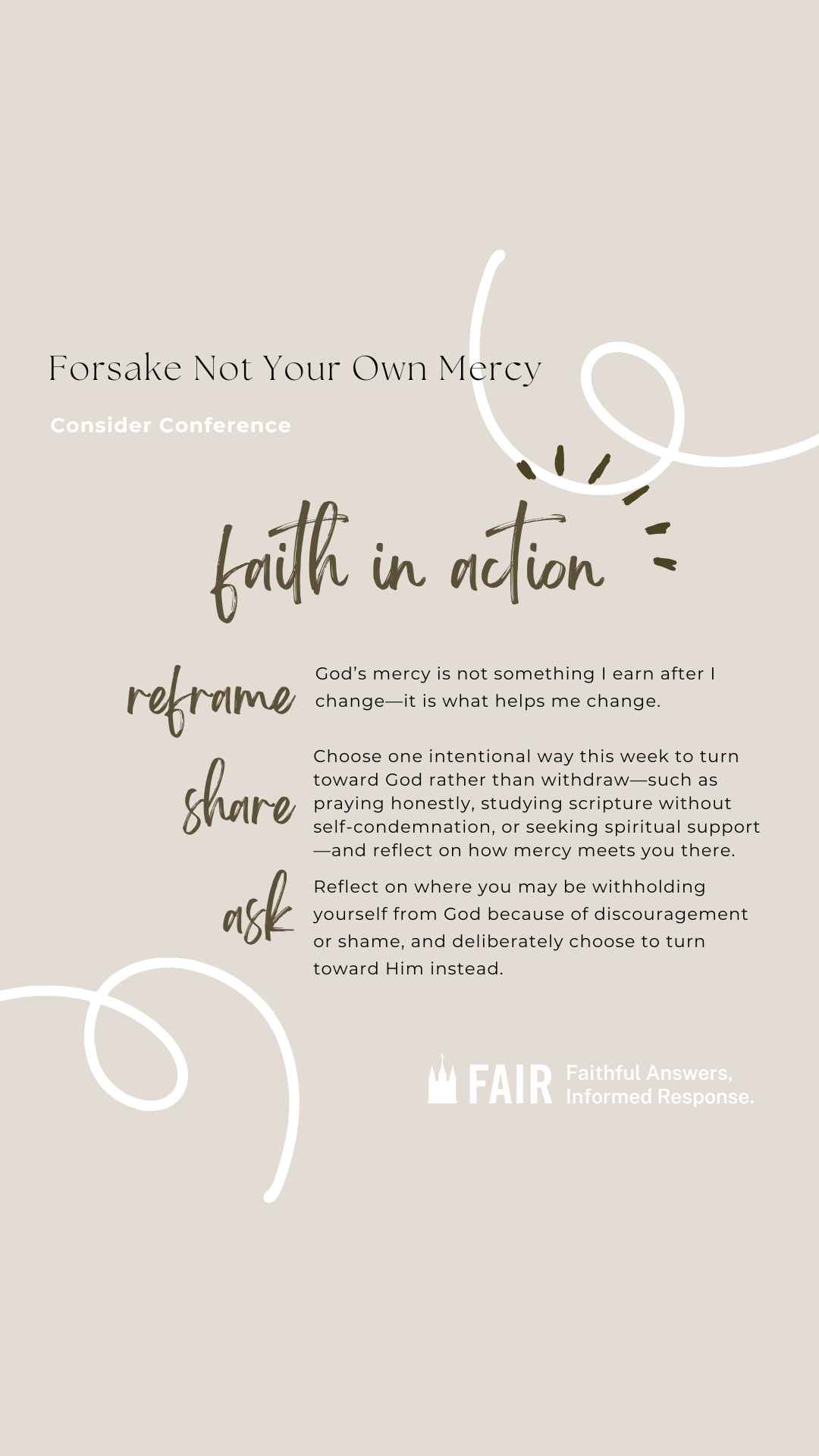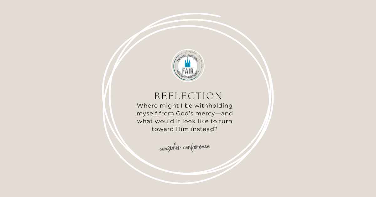 The Consider Conference series by FAIR offers an in-depth look at recent General Conference talks to help members of the Church of Jesus Christ of Latter-day Saints navigate common questions, misunderstandings, and criticisms. Each post provides doctrinal insights, historical context, and practical ways to apply gospel principles in everyday conversations. Through this series, we hope to equip readers with faith-promoting resources that encourage thoughtful reflection, respectful dialogue, and a stronger foundation in gospel truths, fostering both personal conviction and meaningful discussions with others.