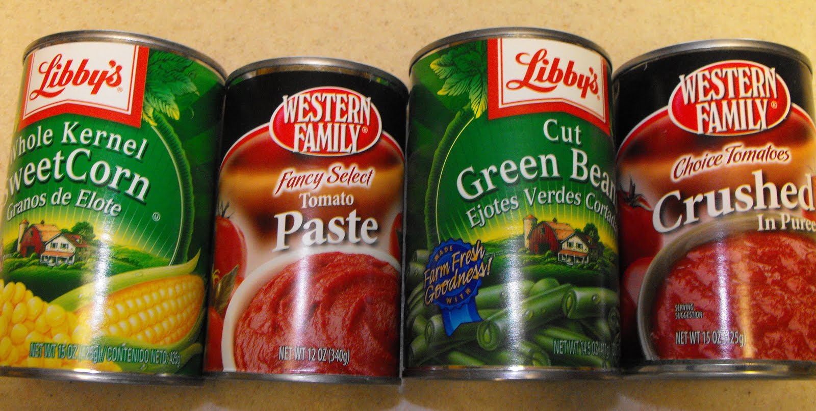 We are focusing on Canned Vegetables and Frozen Vegetables this week. Above, are some of the commercially canned goods I have stored.