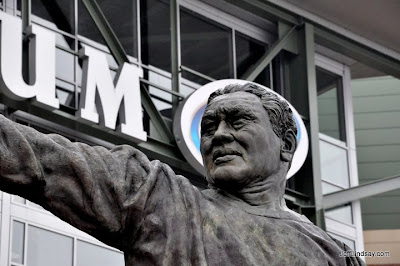 While visiting the Green Bay Temple, I was impressed with the two statues of local saints. These are Saint Curly (Lambeau) and Saint Vincent (Lombardi). If you stand in the right place, they have tasteful halos. This wasn't a Mormon temple, if you didn't notice. It is the temple for a much more popular and still relatively true religion in Wisconsin.