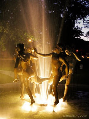 All these thoughts--Nibley, the Temple, good people who leave the Church, and the joy of human friendship--are stirred when I see our famous Ring Dance fountain in Appleton.