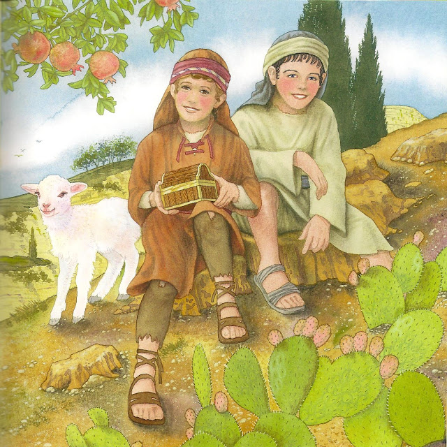 Now, here comes the fun part. We have given each of our adult children (with small children) a Benjamin's Box of their own. Grandpa and I will read the story to our grandchildren....spread across the country, tomorrow online. As we get to each item in the story, we will pause and let a grandchild find the correct egg and put the contents inside of their wooden box. We will be using DimDim (as we have an account with them and can record this to keep). DimDim also has a free service, but you cannot record it. You could also use Skype if you wished.
