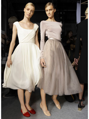 There is always something so elegant about ballet inspired clothing. We Thread Ethic girls lived for some time with the School of American Ballet dancers in New York City, due to housing shortages at The Juilliard School where we were enrolled. Yes, it was a little strange to be pianists surrounded by ballet dancers, but also a little fun to get an inside peek into the lives of dancers. Even when they were rushing around, sweating and exhausted they always looked so polished and chic with their hair in tight little chignons, wearing leotards, tissue thin wrap skirts, tights and toe shoes in shades of blush and pale nudes. The Chloe Spring 2011 collection captured this elegance beautifully. There's just something so timeless about full, pretty skirts, ballet slippers and hair pulled back smoothly and elegantly.