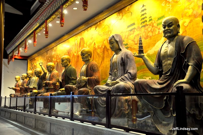 Anyway, here are some photos for now. Click to enlarge slightly. The photos of small boats are from Wuzhen. The Buddhist temple scenes are from Suzhou. Skyline shots are Shanghai.