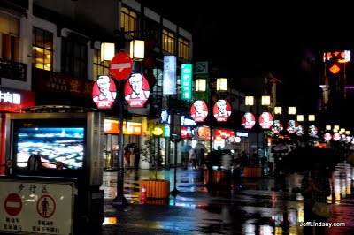 I should mention that an important part of the traffic rules here is the distinction between roads and sidewalks. Motorized vehicles and bicycles are strictly limited to staying on the roads, unless it's more convenient to use the sidewalk. Pedestrians, take note and be on your guard at all times. It's more challenging than a stroll in Appleton, but again, I love this city. It is beautiful, inspiring, challenging, frightening, depressing, enlivening, wild, ferocious, gentle, and a perfect place for Americans trying to get a gentle taste of China, or to be overwhelmed suddenly with the rush of the world's largest city proper.