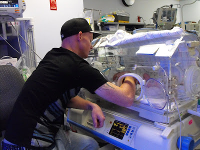 They have not yet been able to hold him, but can touch him and talk to him while he is in the Incubator. He has some issues that may cause him to be in the NICU for up to 3 weeks.