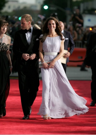 As promised, here are more looks from The Duke and Duchess of Cambridge's tour of North America. In the first photo Kate is wearing a green Diane von Furstenberg dress and clutch, in the second a Jenny Peckham dress, and in the third she is wearing a gorgeous Alexander McQueen gown with Jimmy Choo heels and clutch. Modesty with high style.